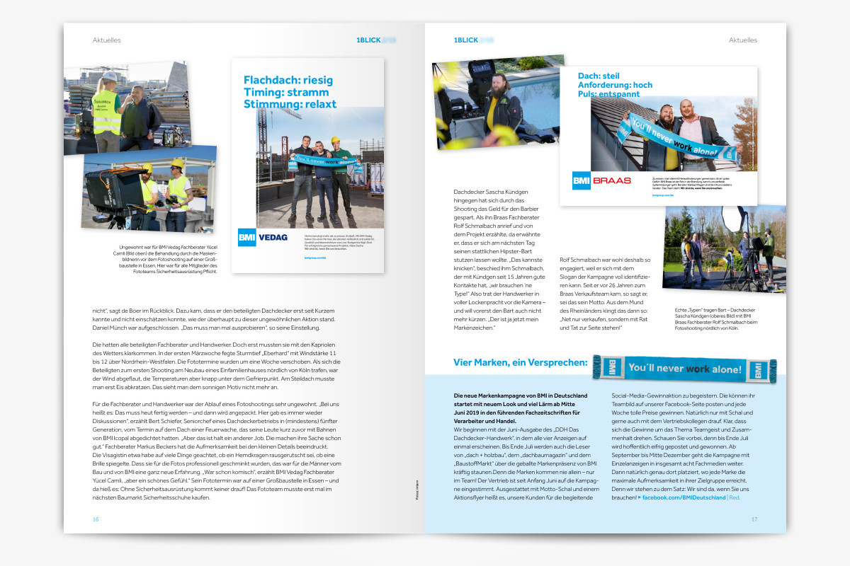 Über viele Jahre haben wir für die BMI Group ein Mitarbeitermagazin konzipiert, gestaltet und redaktionell begleitet. Ein Format, das intern etabliert war und kontinuierlich weiterentwickelt wurde.